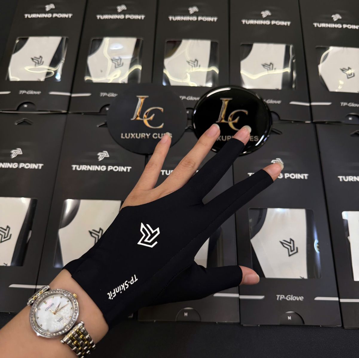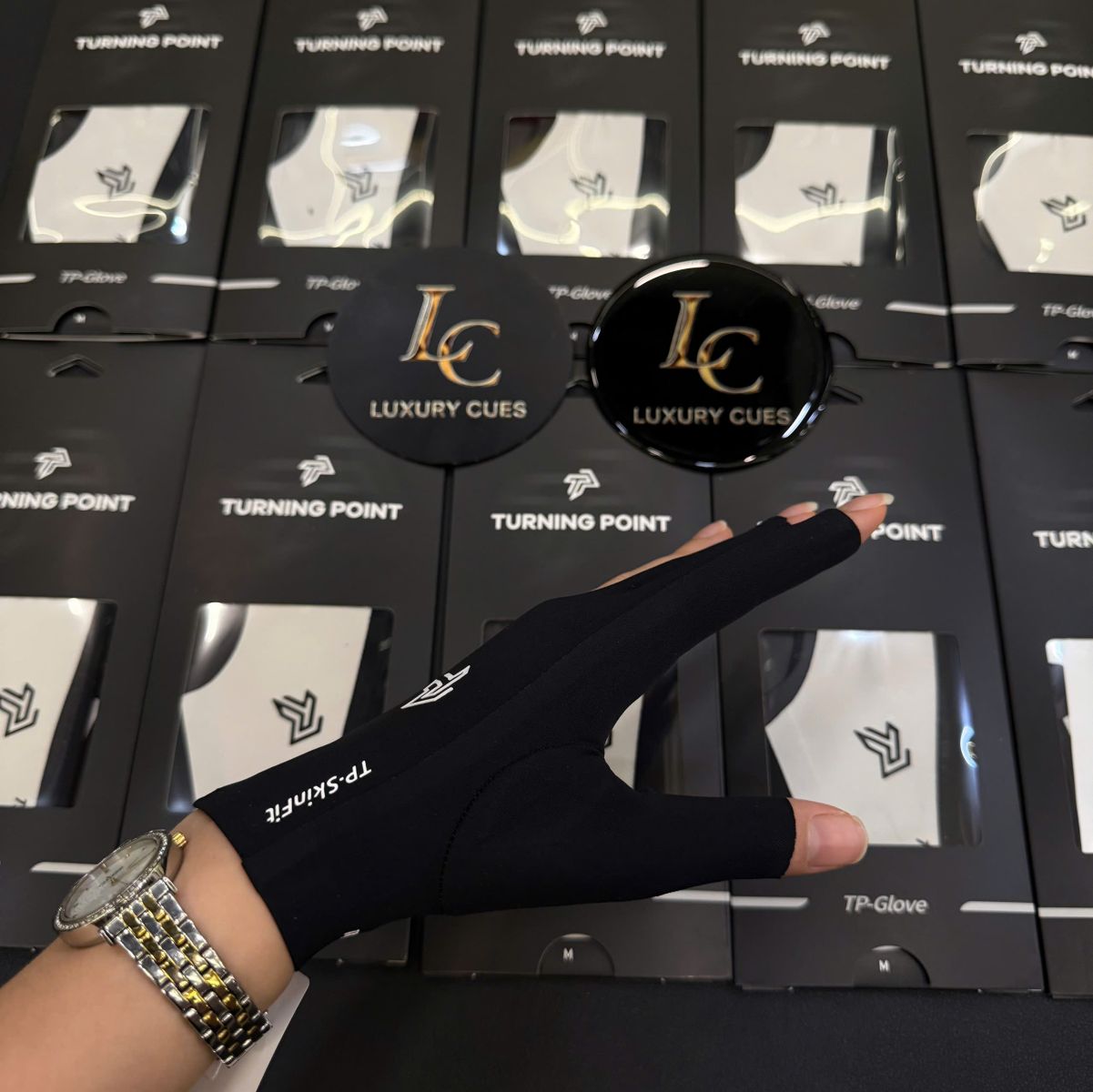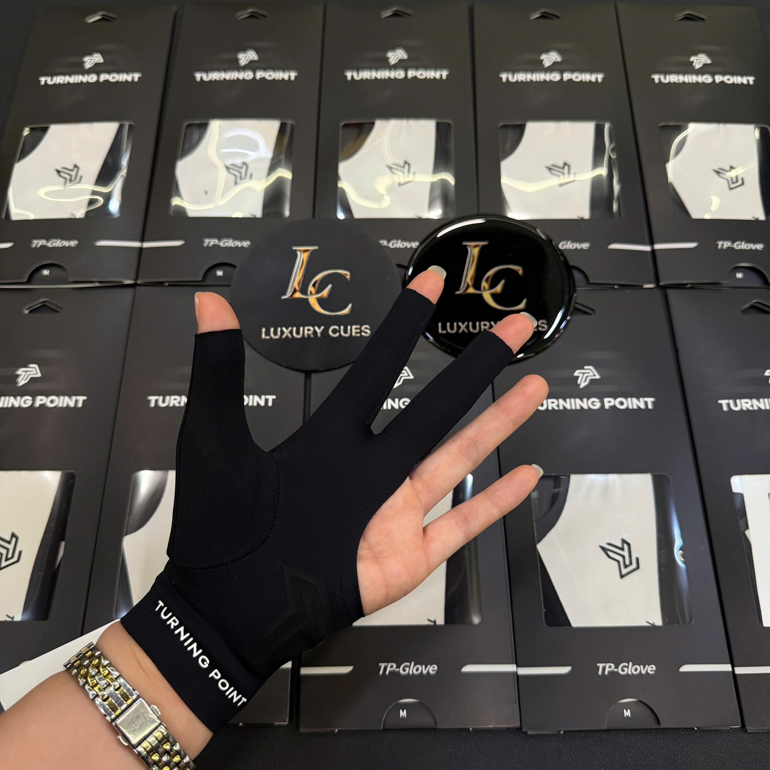 Găng tay TP (Turning Point) phiên bản màu đen mang phong cách mạnh mẽ, cá tính và cực kỳ sang trọng. Được thiết kế chuyên dụng cho cơ thủ, sản phẩm giúp giảm ma sát, tăng tốc độ trượt cơ và đem lại sự thoải mái tối đa khi thi đấu.