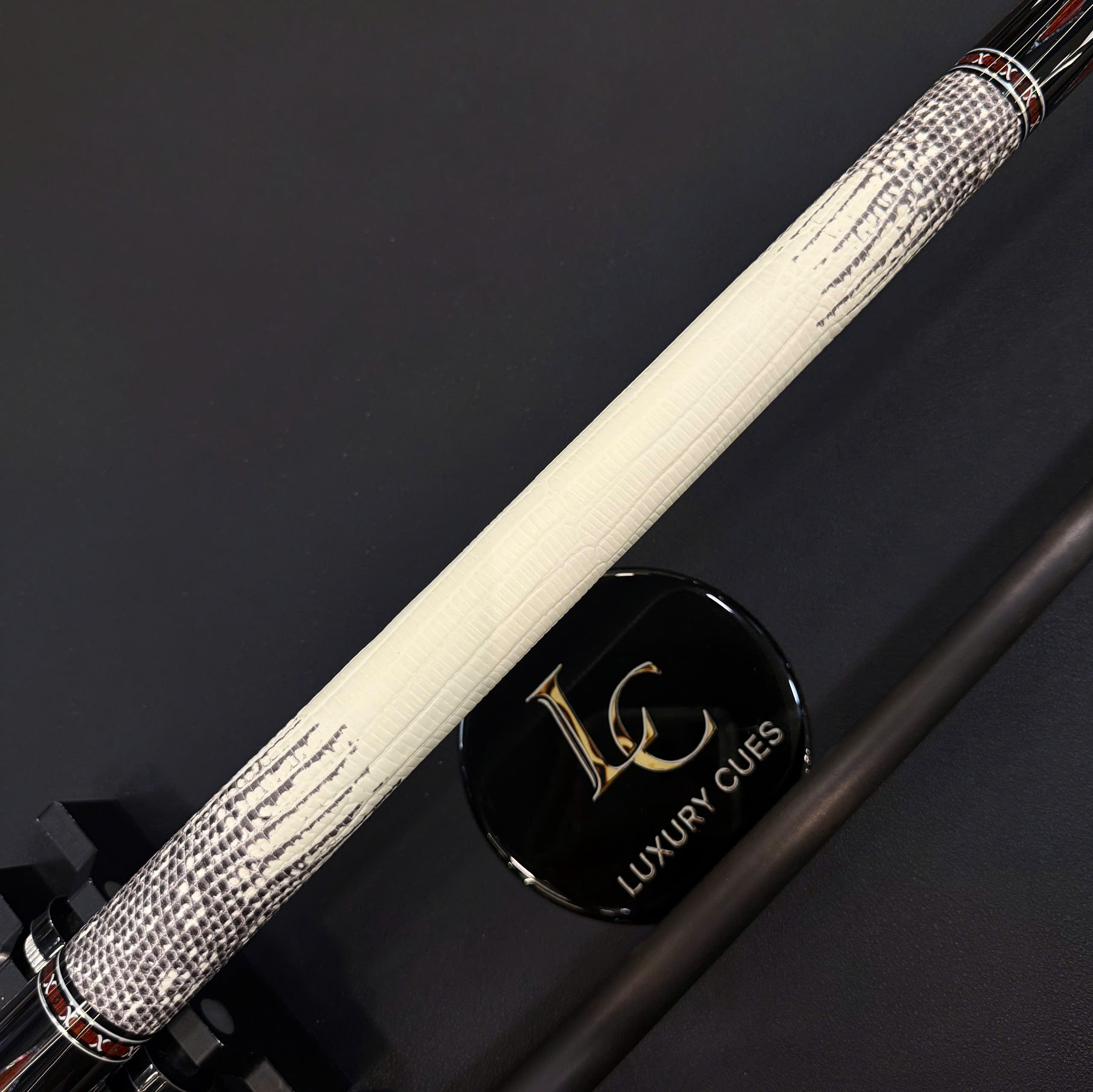 Trải nghiệm cầm nắm đẳng cấp: Tay cầm bọc da vân kỳ đà không chỉ là điểm nhấn thẩm mỹ mà còn giúp cơ thủ có cảm giác cầm nắm chắc chắn, ổn định trong suốt quá trình thi đấu.